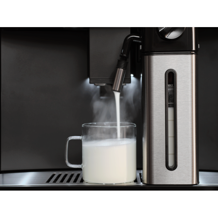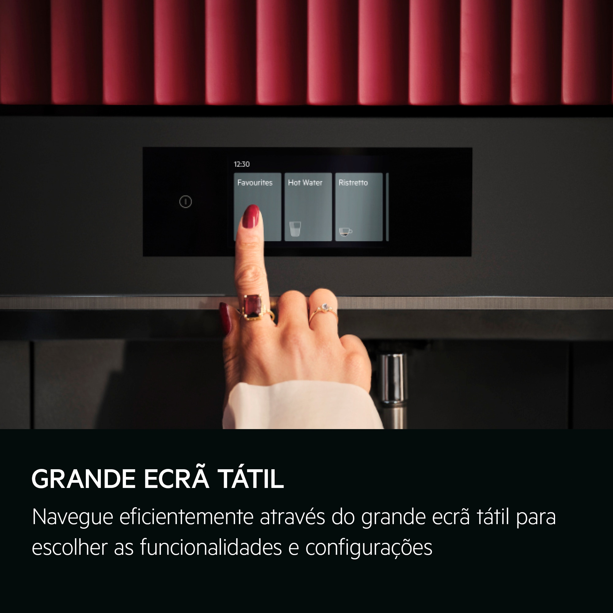Máquina de café eletrónica de 45 cm, com display CookSmart Touch de 4,3'', 15 bares de pressão, para preparar espresso, chá e cappuccino. Inclui: jarra de café, jarra de leite, moinho de café, cor preto mate