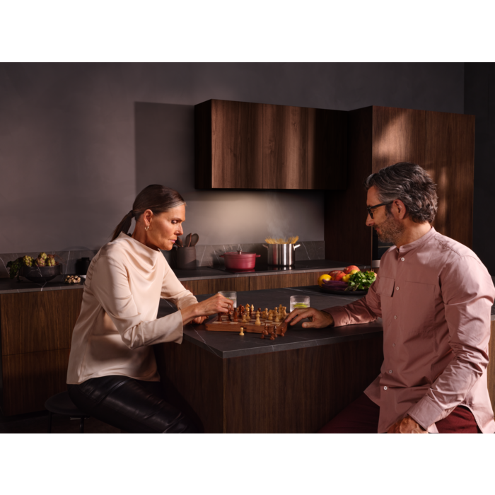 *Desbloqueie as cores mágicas de cada ingrediente com a tecnologia Perfect Illumination. A iluminação ajustável proporciona clareza sobre o seu cooktop e permite-lhe personalizar a iluminação da sua cozinha para refletir o seu humor ou hora do dia.