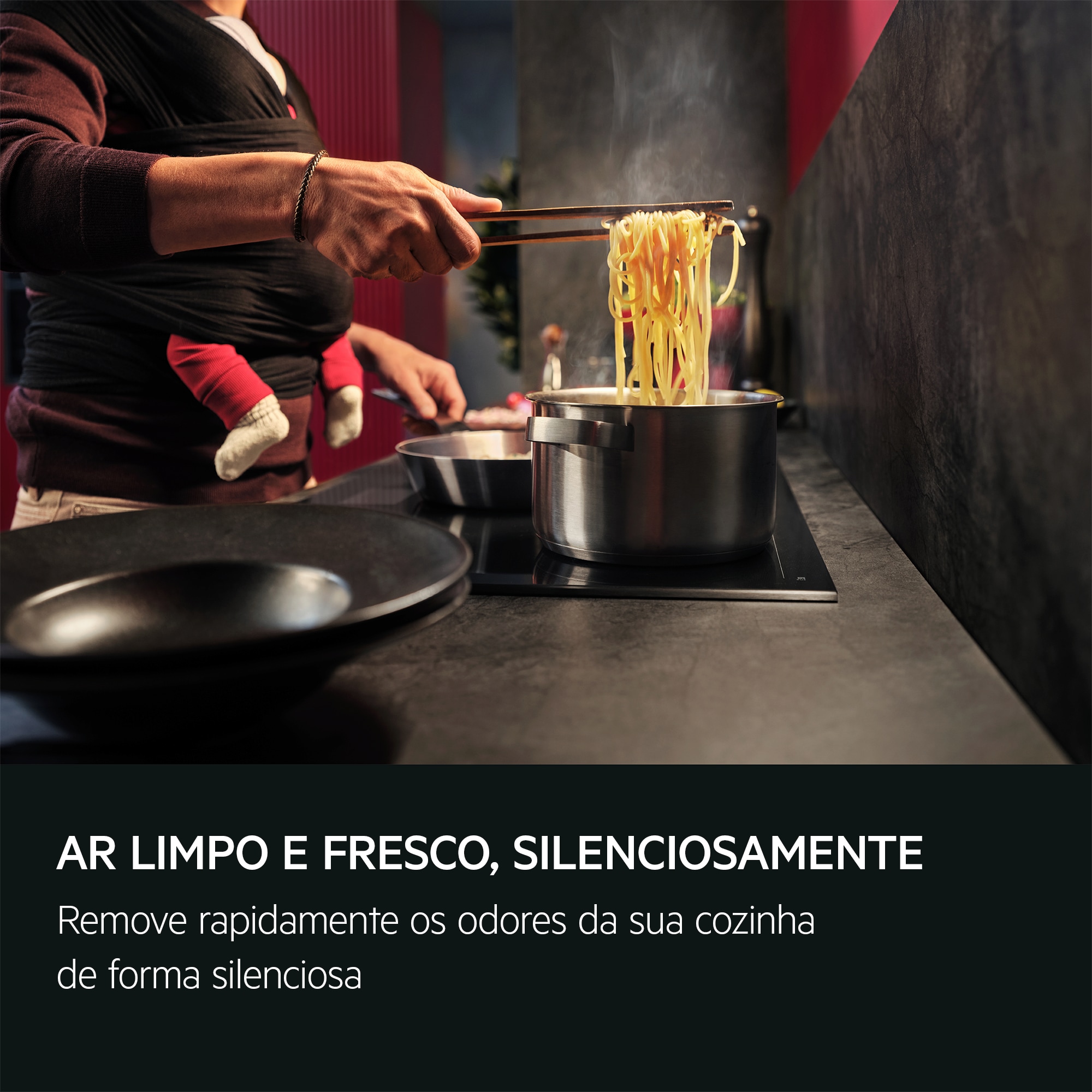 Mantenha o ar da cozinha limpo com os nossos exaustores mais eficientes em termos energéticos, com classe energética A e superior. Cozinhe com a sua família e amigos numa cozinha fresca, com menos ruído e de forma energeticamente mais eficiente.