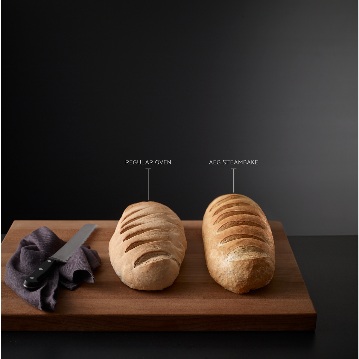 Fogão vitrocerâmica da Série 6000 de 86 x 60 x 60 cm, vitrocerâmica de 4 zonas, Forno multifunções SteamBake, display digital, interior em esmalte preto, grelhador, forno com 7 funções, trilhos telescópicos em 1 nível, capacidade XXL, aço inoxidável e preto