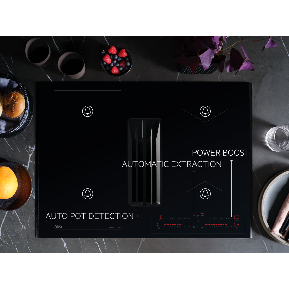 As placas de indução com exaustor integrado AEG EcoLine são selecionadas com base na melhor classificação energética.