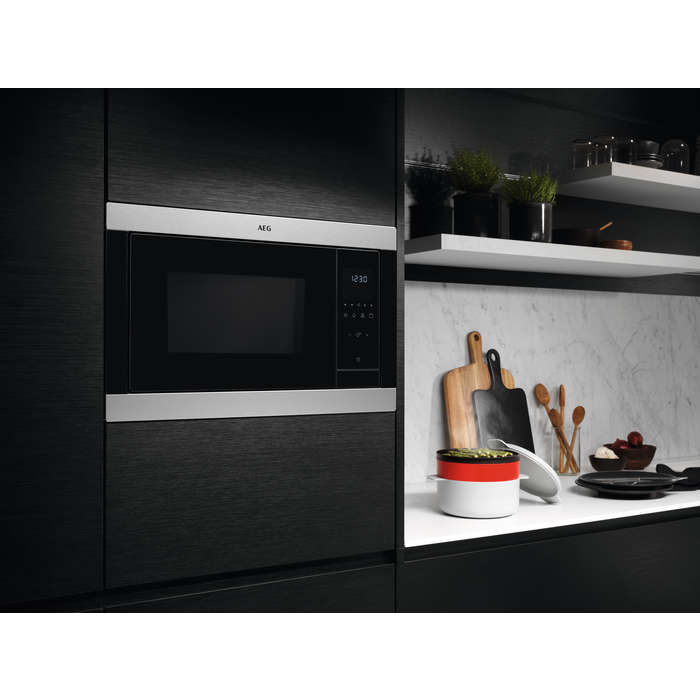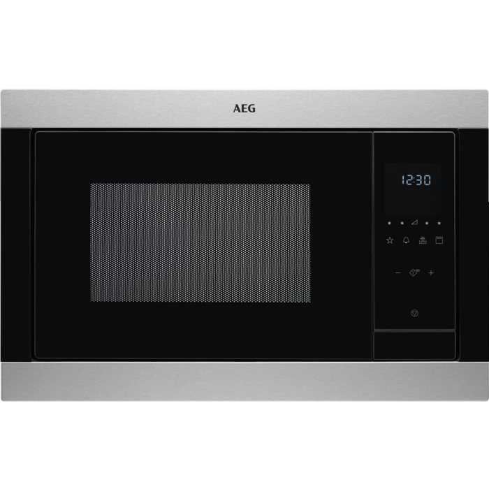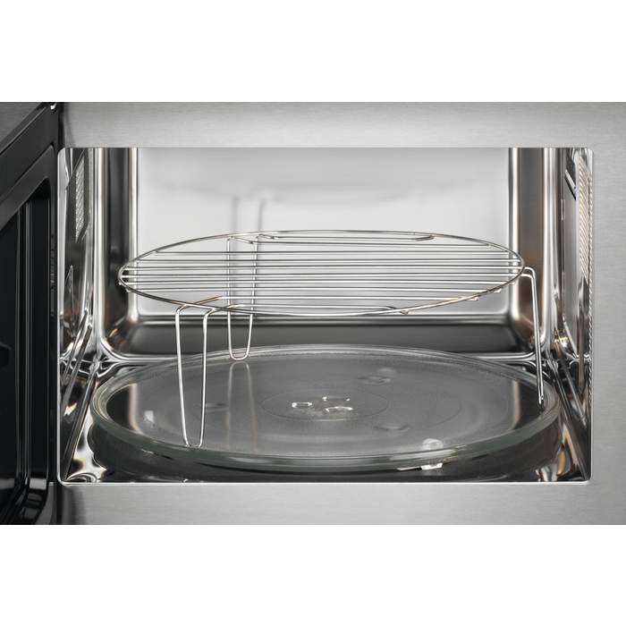 Micro-ondas com Grill de 38cm e 25 l de capacidade útil, Display LED, Controlo Tátil, micro-ondas 900 W + grill de 1000 W, preto com barras superior e inferior em inox anti dedadas