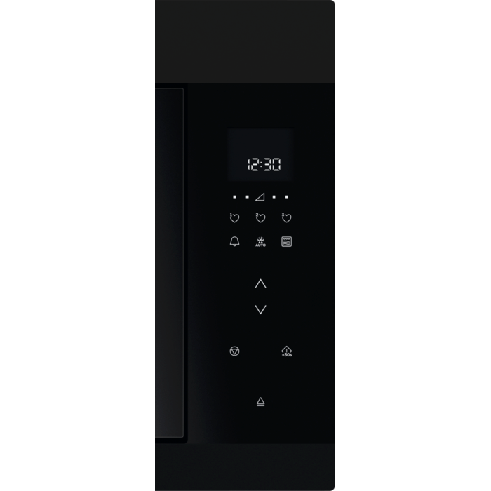 Micro-ondas da gama Premier Line de 26 litros e 900 W com função micro-ondas e grill da Série 6000, com ecrã LED tátil e programas de cozedura, vidro preto mate, micro-ondas de 900 W e grill de 800 W, moldura integrada e abertura eletrónica, diâmetro do prato rotativo de 32,5 cm. Inclui kit de cozedura a vapor