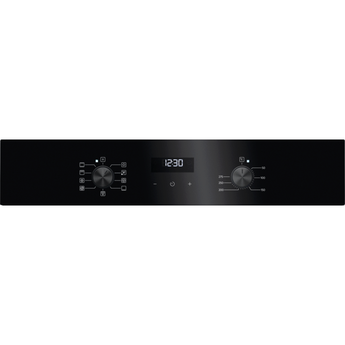 Forno multifunções Série 5000 SurroundCook com Display LED de 72 litros, 7 funções, comandos escamoteáveis Inox, porta com 2 vidros, vidro preto e puxador preto anodizado