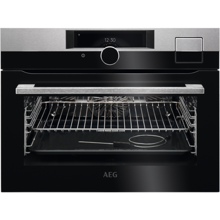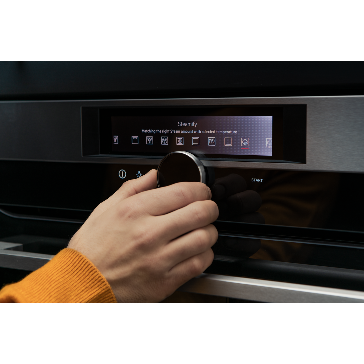 Forno compacto SteamPro de 43 litros, 20 funções + 5 vapor, Wifi, Steamify, Display TFT, Sonda Térmica, 4 vidros e fecho suave na porta, preto e inox antidedadas, A++