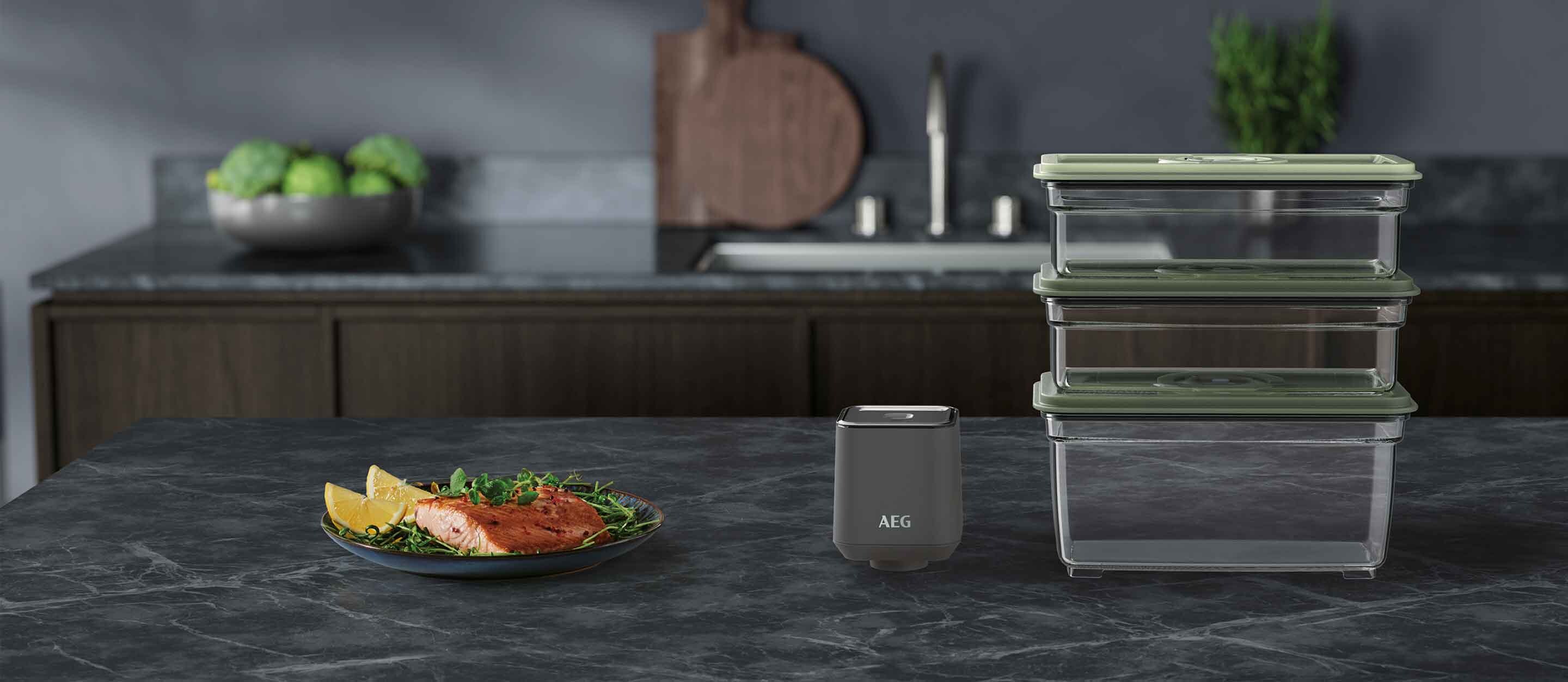 A nova gama de máquinas de vácuo AEG ajuda a reduzir o desperdício de alimentos em casa, a preservar alimentos e nutrientes por mais tempo, otimizar seu armazenamento e monitorizar o estado do mesmo da melhor forma possível. Desfrute da comida por mais tempo.