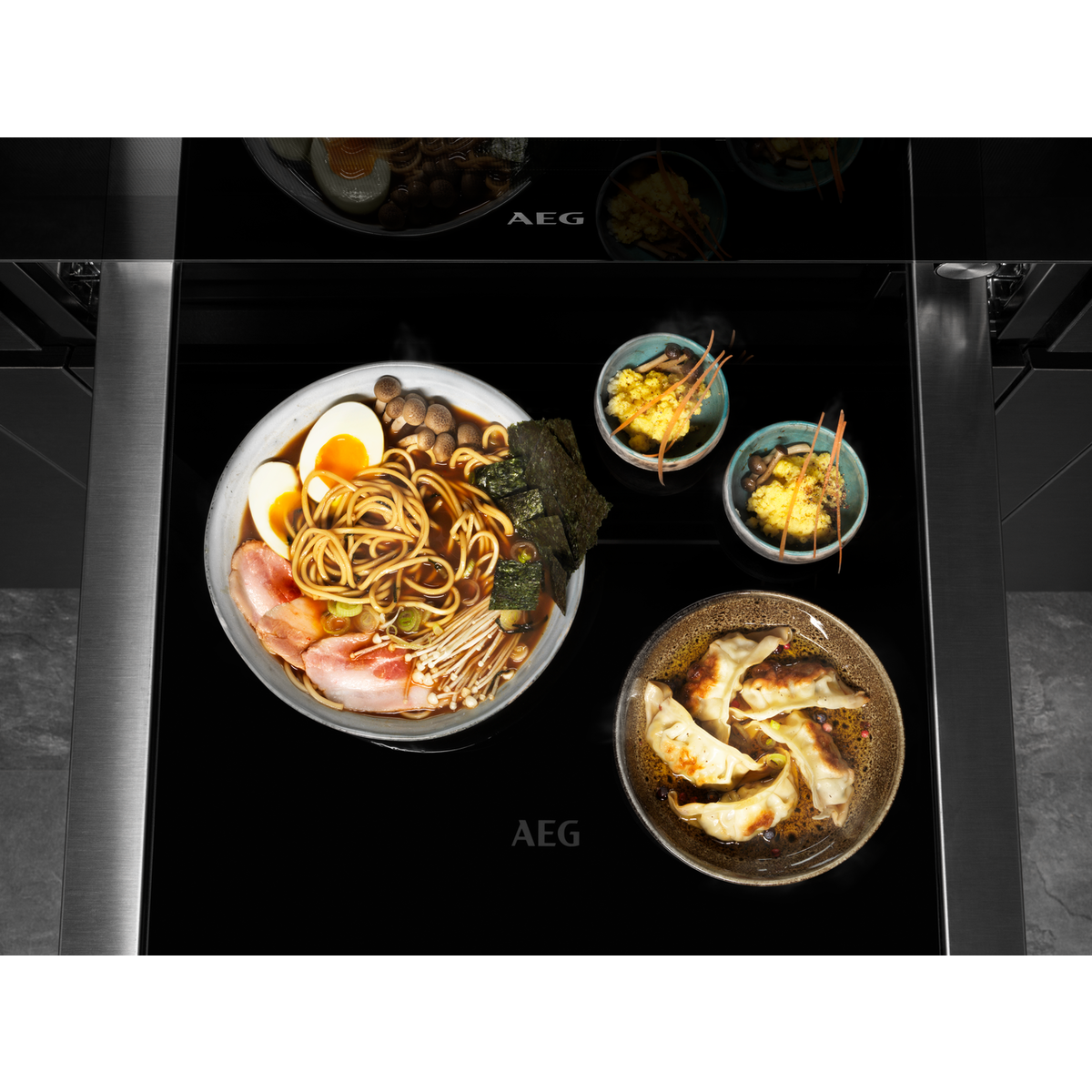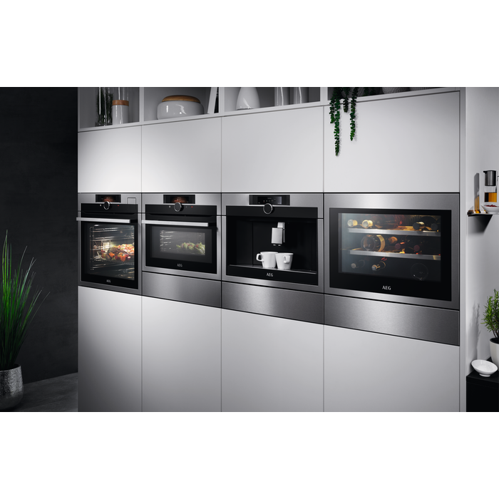 Gaveta de aquecimento de encastre de 14 cm com capacidade para 6 conjuntos, intervalo de temperatura de 30 ºC a 80 ºC, abertura «Push Pull», Cor Inox Anti dedadas