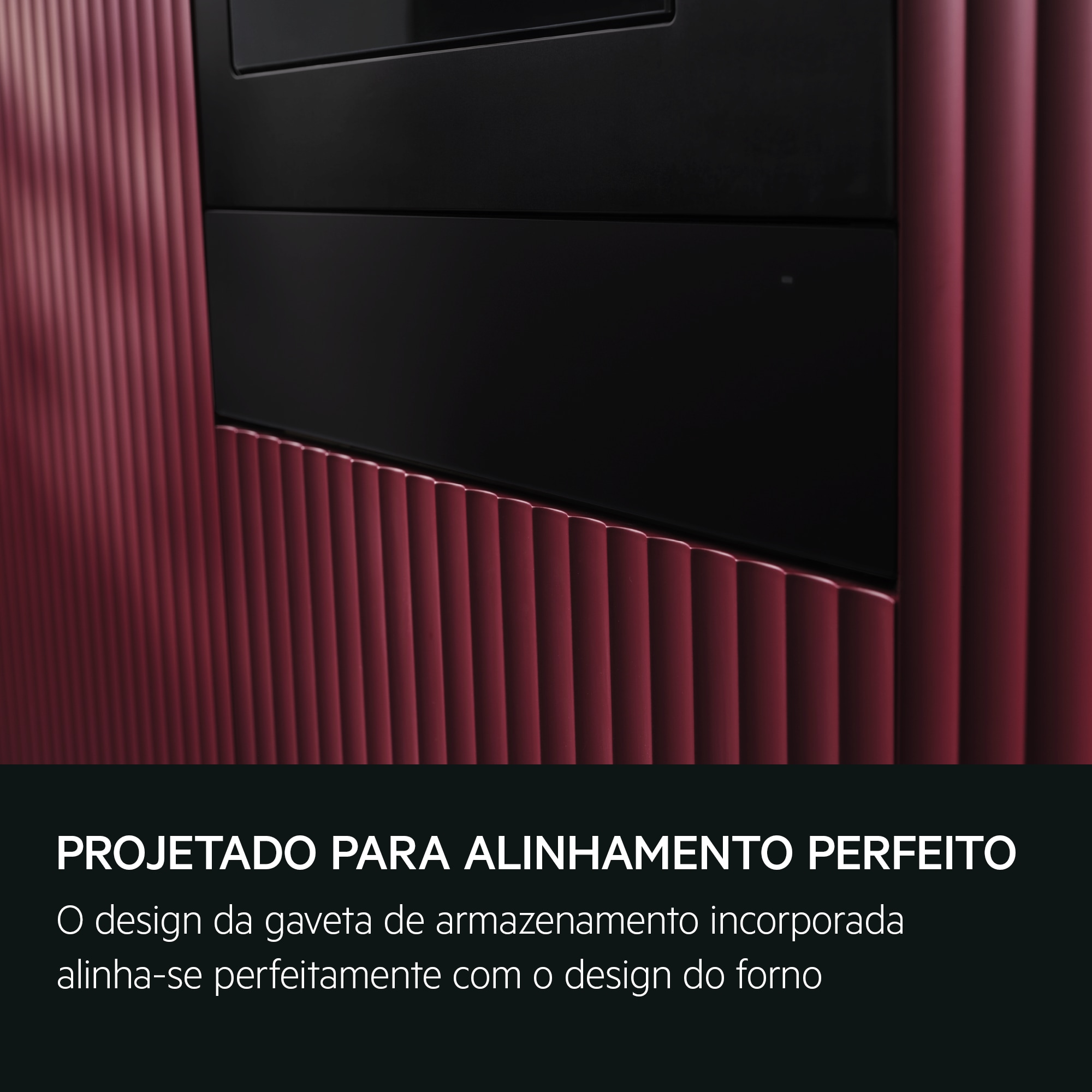 Alinhamento perfeito: A gaveta de armazenamento integrada complementa o forno