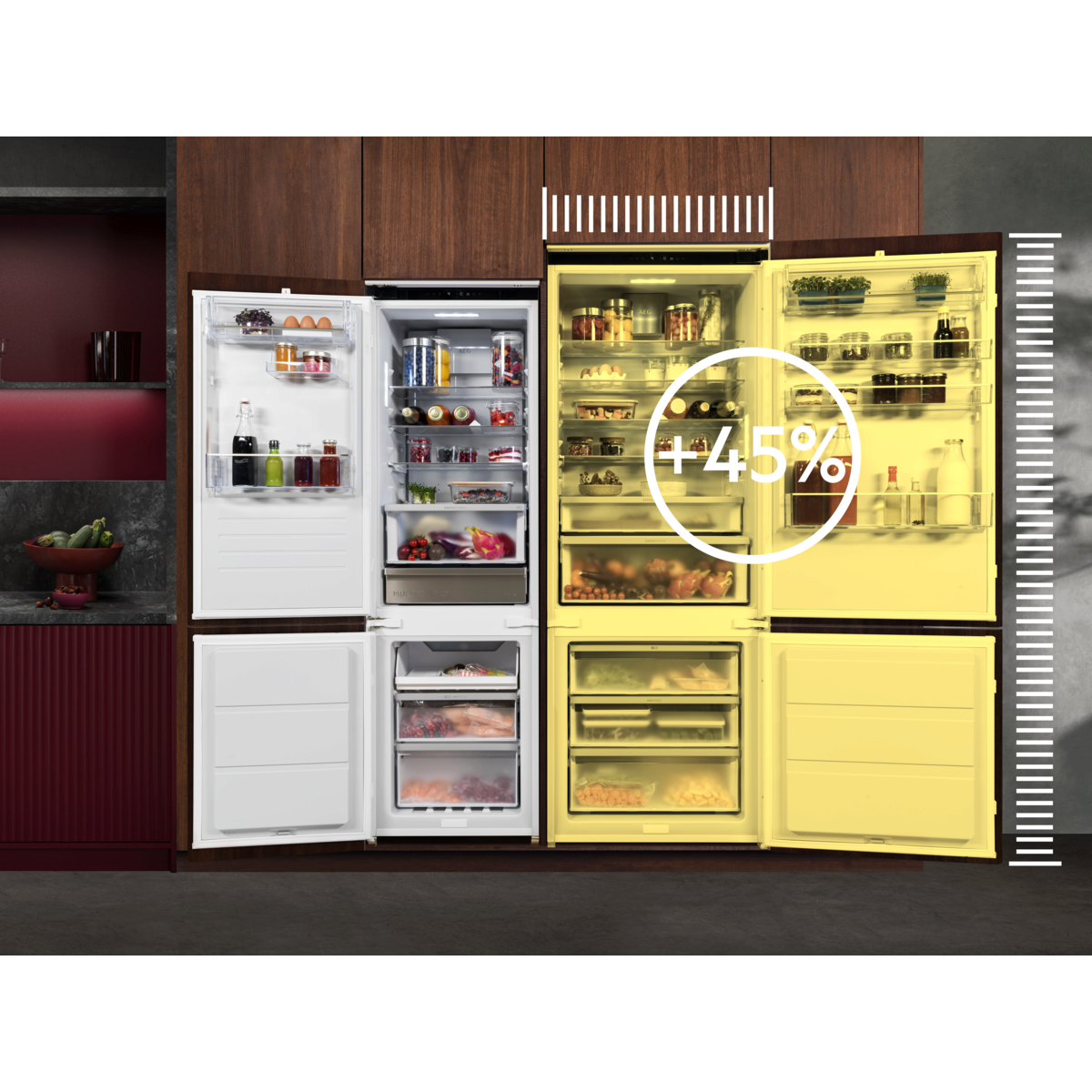 Revestimento interno rHIPS feito com até 70% de plástico reciclado, representando 13% do plástico total do frigorífico.