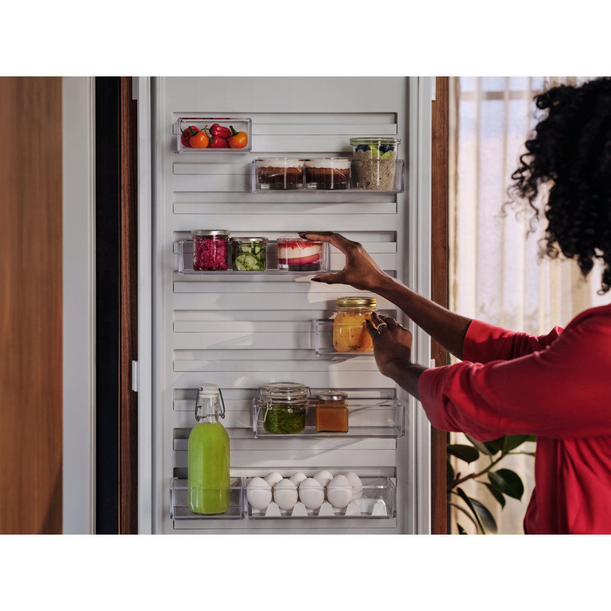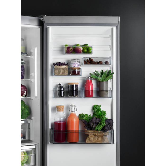 O combinado AEG 6000 TwinTech® Total No Frost mantém os alimentos mais suculentos do que os frigoríficos com apenas um evaporador. O seu sistema de refrigeração duplo mantém o nível humidade ideal e evita que os alimentos sequem. O que também elimina a necessidade de descongelar o congelador.*