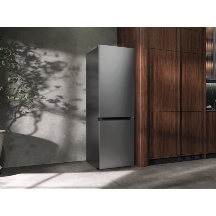 Frigorífico Combi Twintech MultiFlow da Série 6000 de 1,87 m e 60 cm de largura, ecrã LED no interior, pega integrada, luzes LED, porta plana com aspeto em aço inoxidável