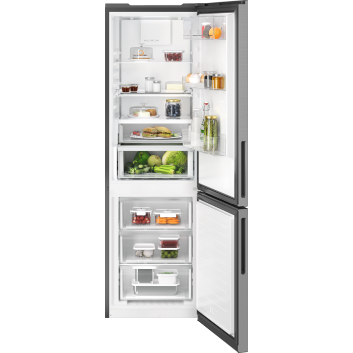 Combinado da Série 7000 UltraFresh+ Fridge Freezer de 187 cm, TwinTech No Frost Multiflow, display digital LED na porta, gaveta ExtraChill, luzes LED, puxador integrado, porta plana em aço inoxidável