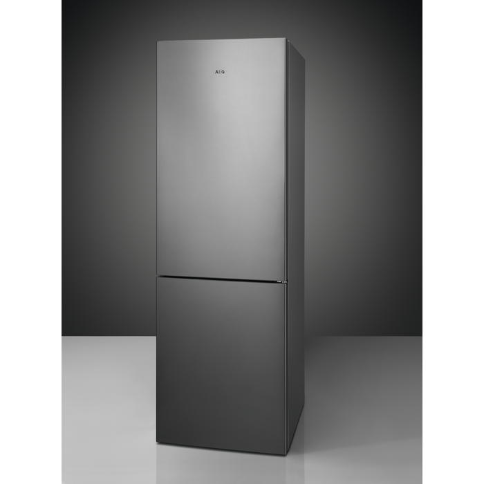 Frigorífico TwinTech® No Frost da Série 6000 de 186 cm x 60 cm, TwinTech No Frost Multiflow, visor digital LED no interior, gaveta ExtraChill, luzes LED, puxador integrado, porta plana com aspeto em aço inoxidável