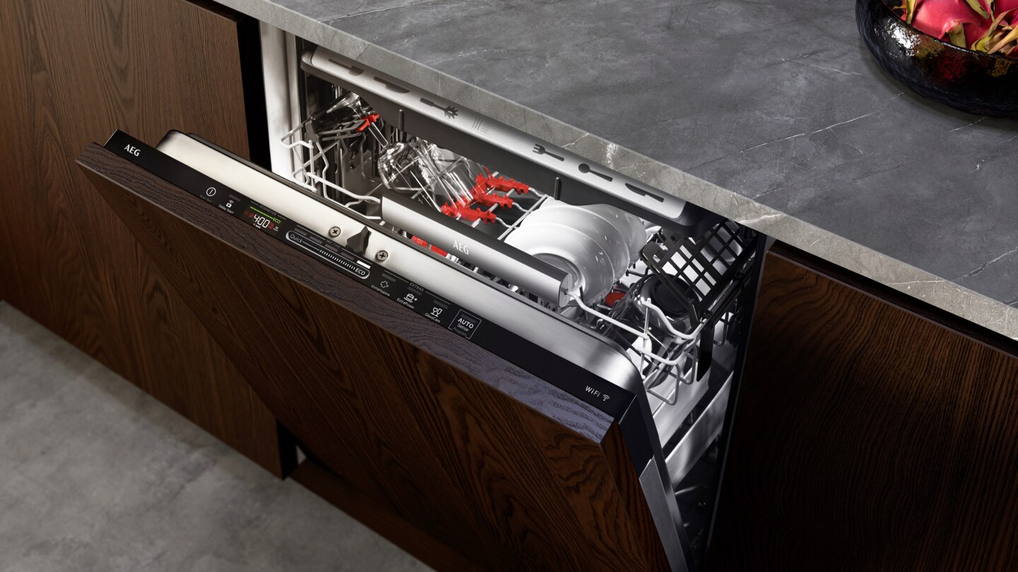 As máquinas de loiça AEG são silenciosas e têm programas que lavam e cuidam da loiça na perfeição, mesmo a mais delicada. Além disso, toda a gama inclui o sistema AirDry que maximiza a eficácia de secagem em qualquer tipo de recipiente.