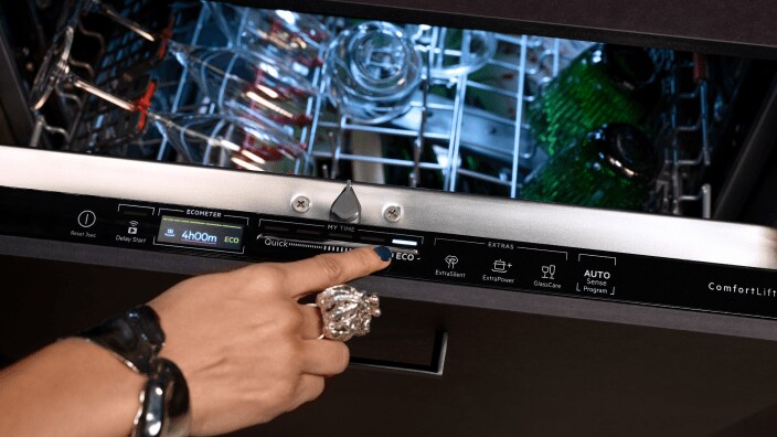 A máquina de lavar loiça é um eletrodoméstico muito prático que permite poupar tempo e esforço. O processo de colocar e retirar a loiça da máquina é mais eficiente e rápido do que esfregar cada utensílio à mão no final da refeição. Mas o mais importante é que consome menos água e detergente do que a lavar a loiça à mão. Precisa de mais alguma razão?