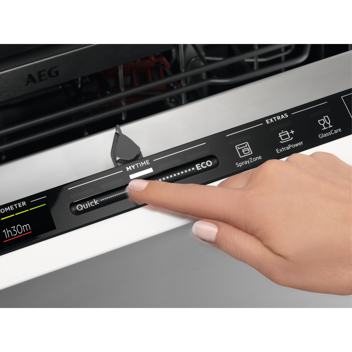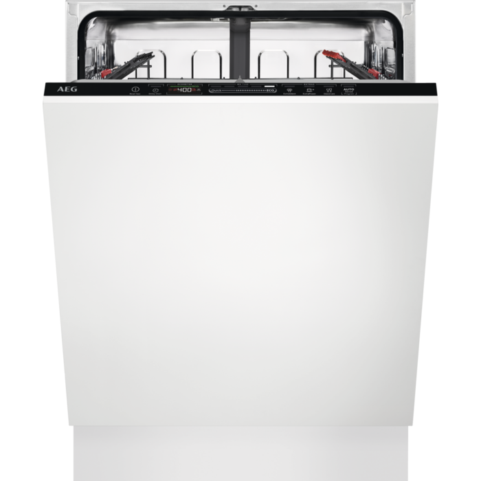 Máquina de lavar loiça de encastrar com display com função QuickSelect, Braço satélite aspersor, capacidade para 12 talheres, Secagem AirDry, braço aspersor satélite, Sistema AutoOff com 7 programas a 4 temperaturas, AutoSensor, TimeBeam, Nível de ruído 42 dB(A), Porta deslizante