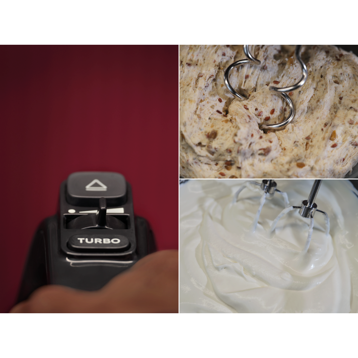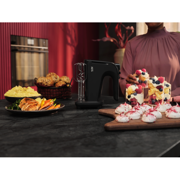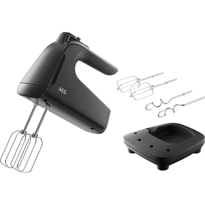 Batedeira de 500 W com 5 velocidades, função Turbo, gancho e hastes em aço inoxidável, cabo com 1 metro de comprimento, preta
