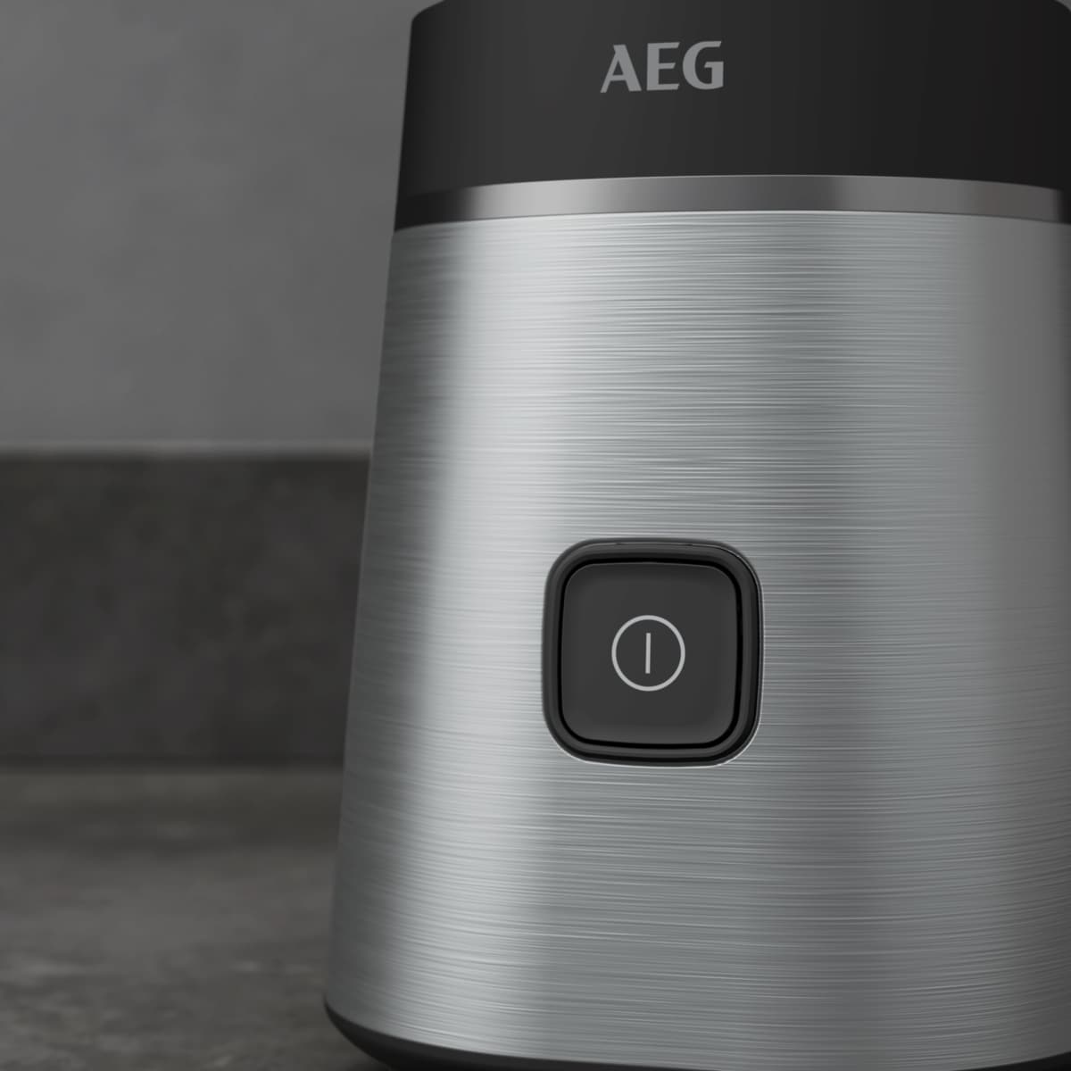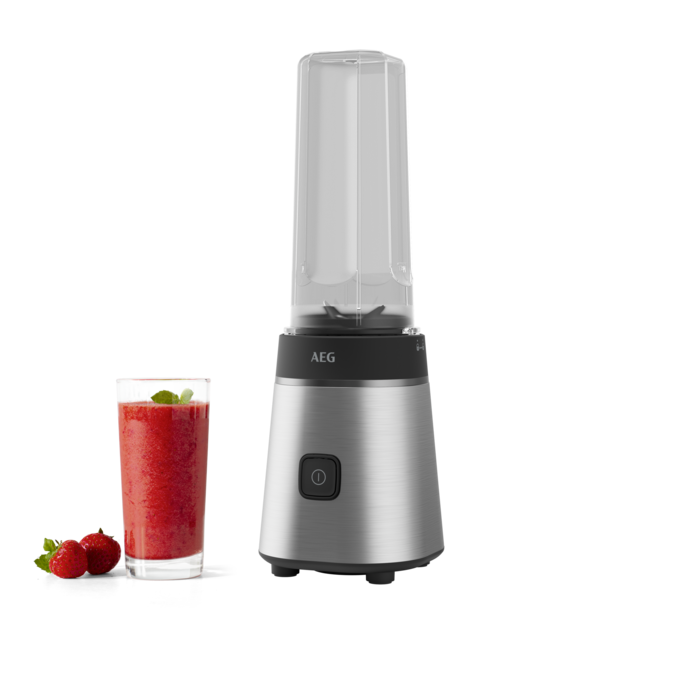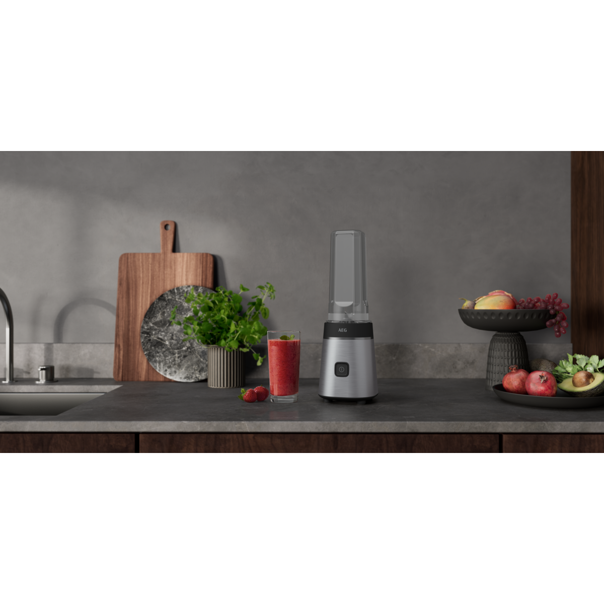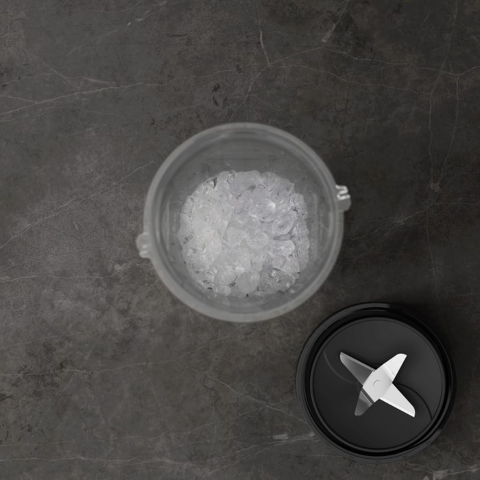 Liquidificadora Sport com motor de 300 W de potência, base em inox, garrafa transportável em plástico livre de BPA com capacidade para 600 ml, lâminas TruFlow®, função Pulse, cabo de 1m