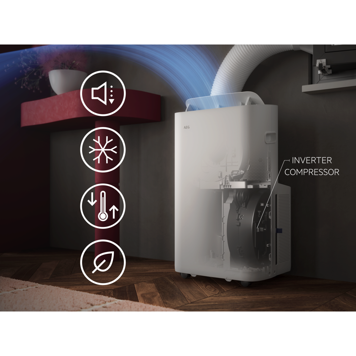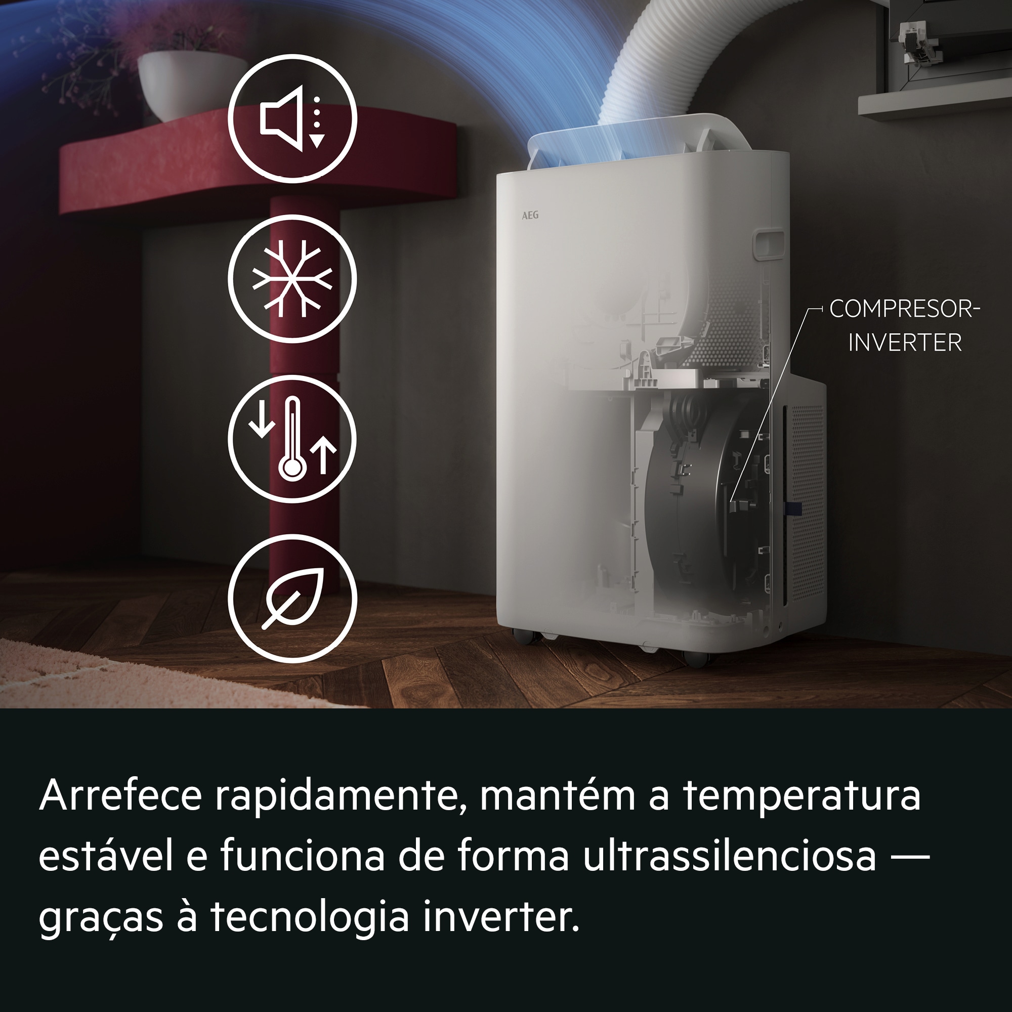 ¹Refere-se ao arrefecimento a temperatura estável, comparado com o Ar Condicionado Portátil AEG 6000.
