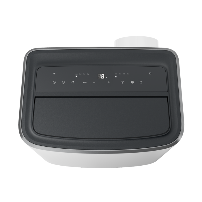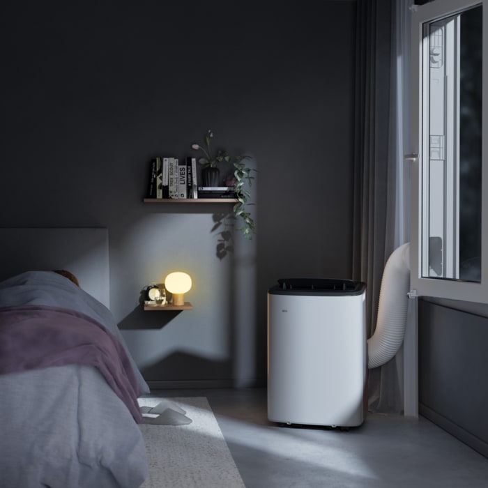 Ar condicionado portátil com conetividade WiFi, função de arrefecimento (Classe A), desumidificação e ventilação, 9.000 BTUs, nível de ruido máximo 64 dB(A), temporizador 24 horas e gás refrigerante eco sustentável R290