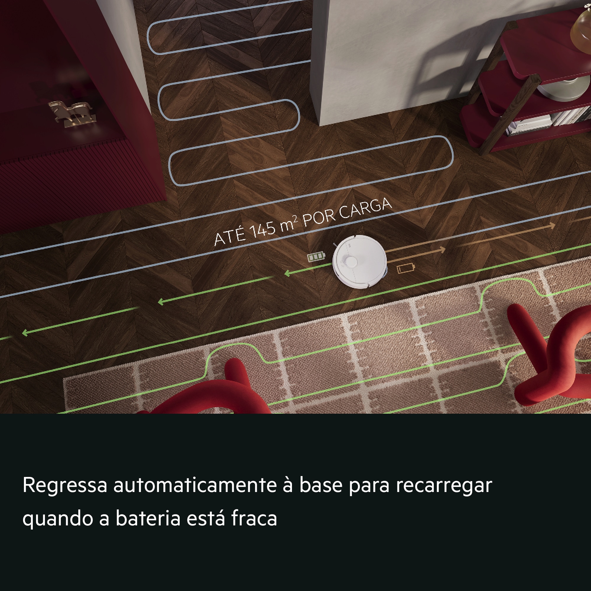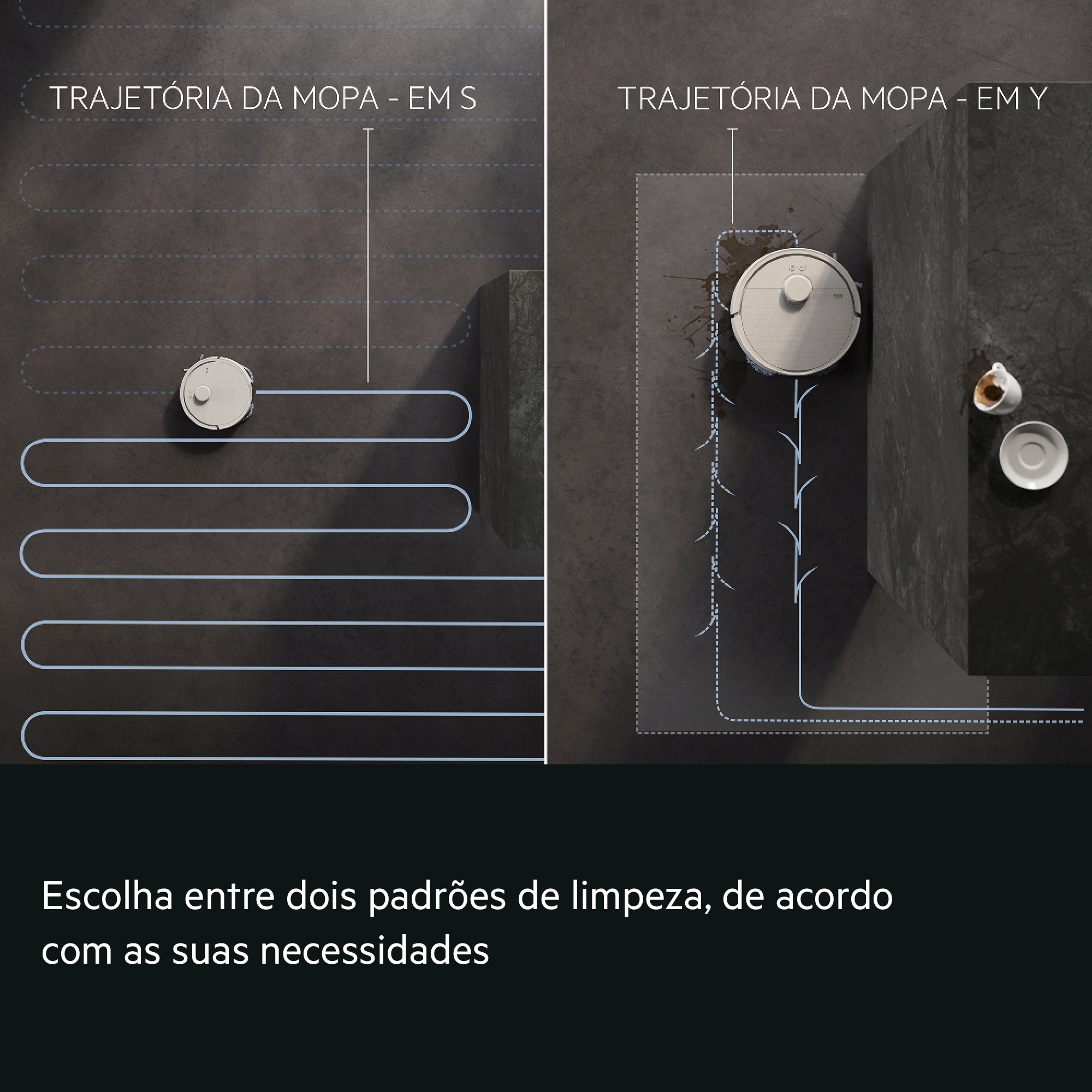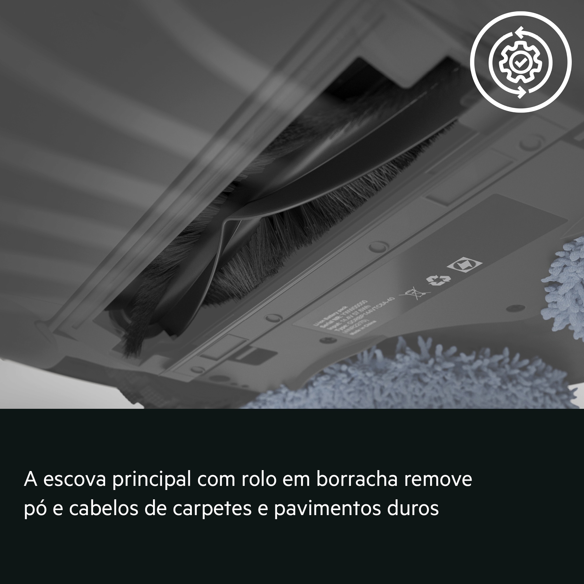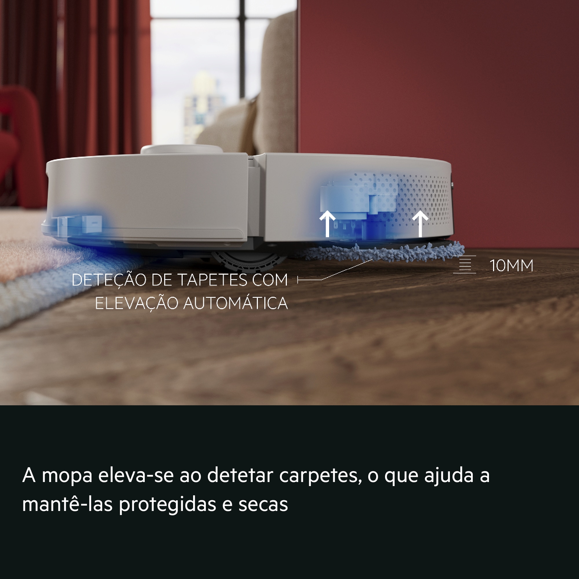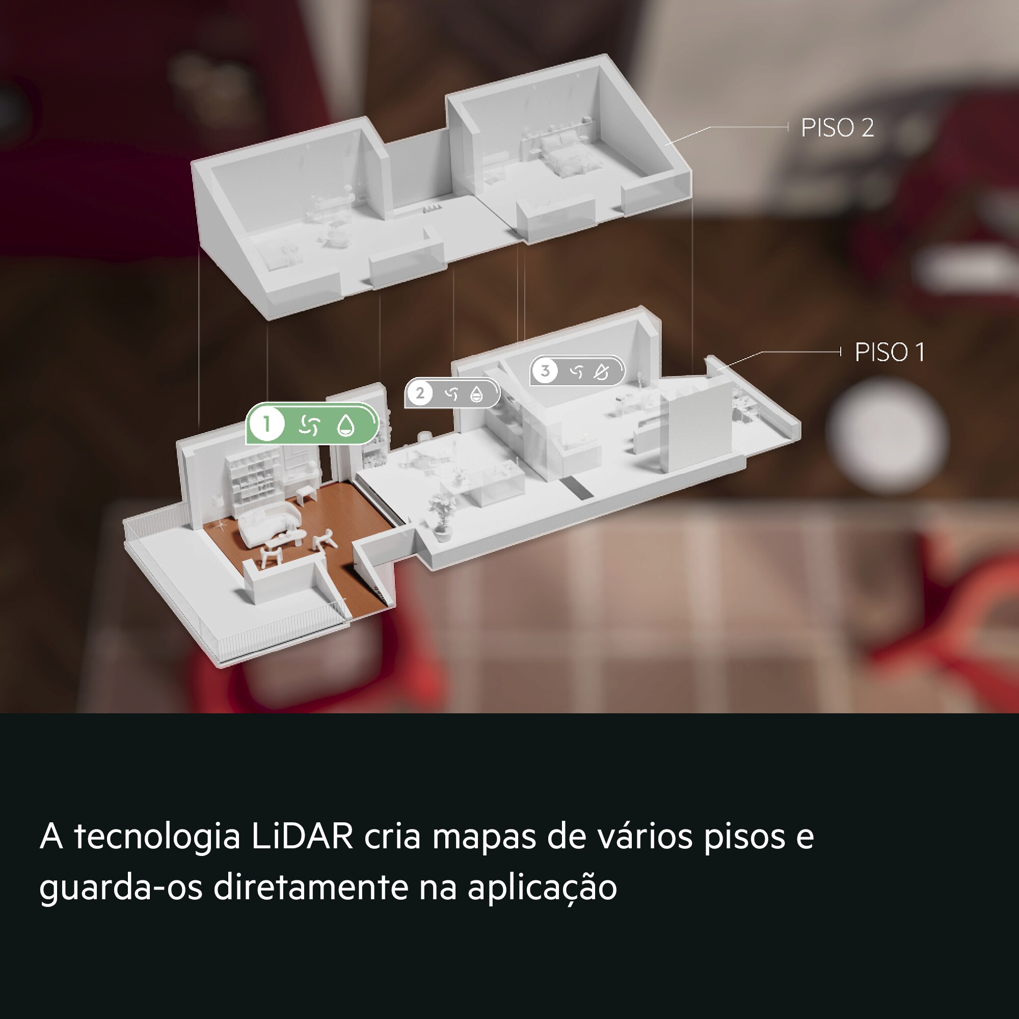 Aspirador robot AEG Trilobite com tecnologia Laser LiDAR, limpeza por zonas, função mopa, tempo de carregamento inferior a 6 horas, autonomia máxima de 208 minutos, potência de 7000 Pa, depósito de pó de 0,3 litros, depósito de água de 0,1 litros, app iOS e Android, controlo por voz, escova principal motorizada, base de carregamento e estação de esvaziamento com função de secagem a 60–65 °C, saco da estação com capacidade de 2,5 litros e reservatório de água de 3,2 litros, branco