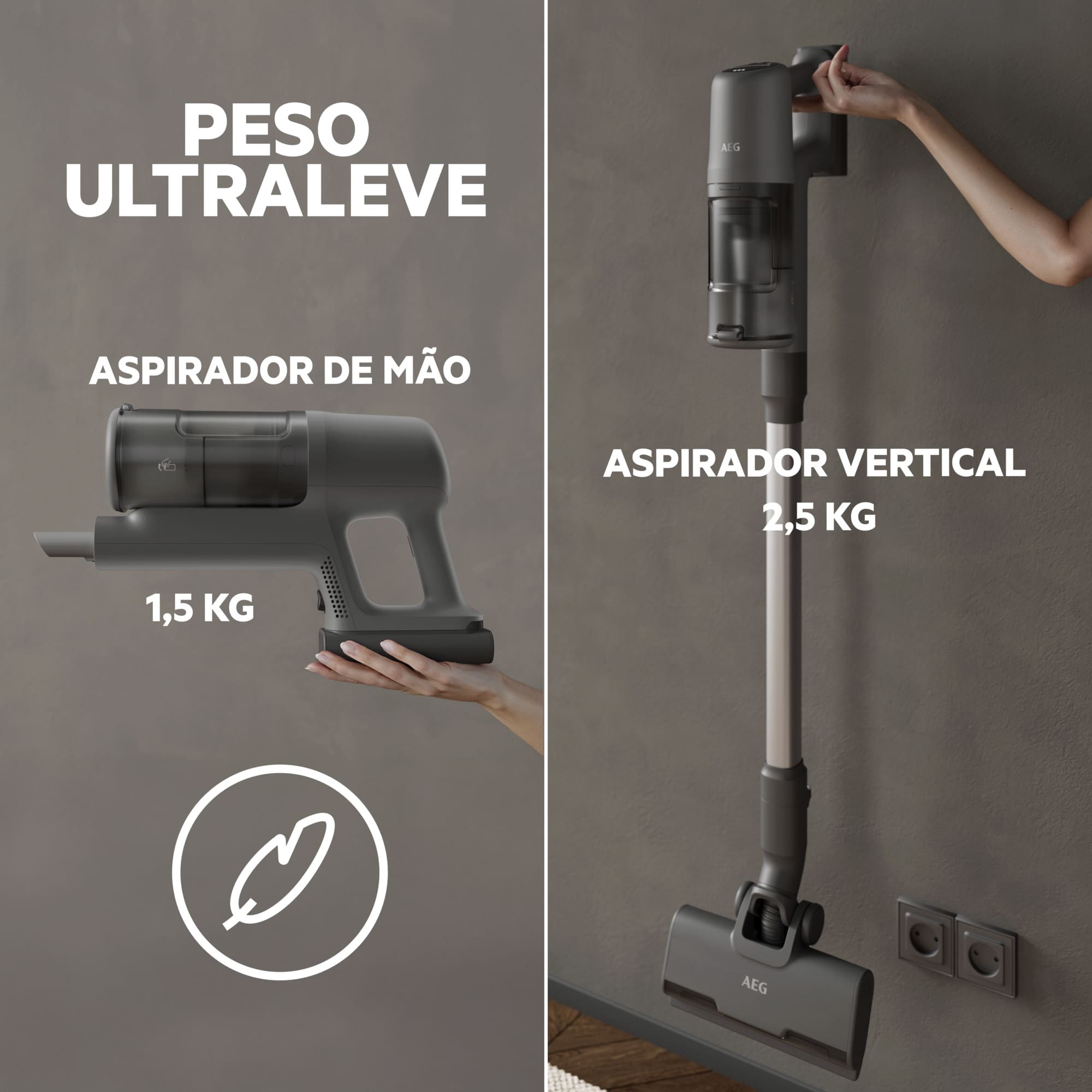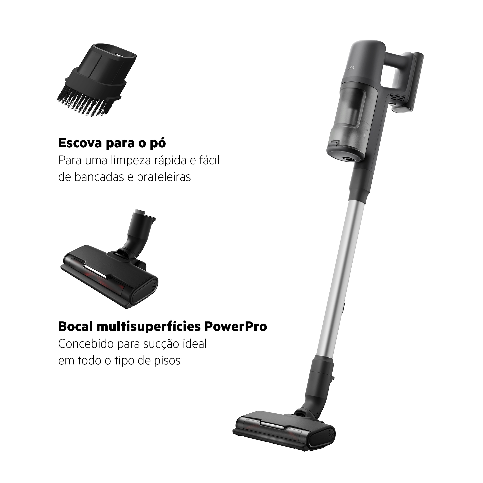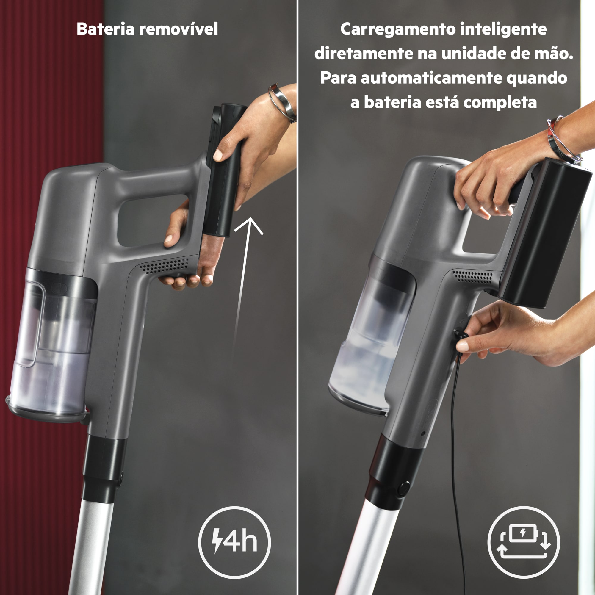 *Com base em testes internos de acordo com a norma IEC 62885-4 na medição do tempo de funcionamento do aspirador de mão no modo mínimo.