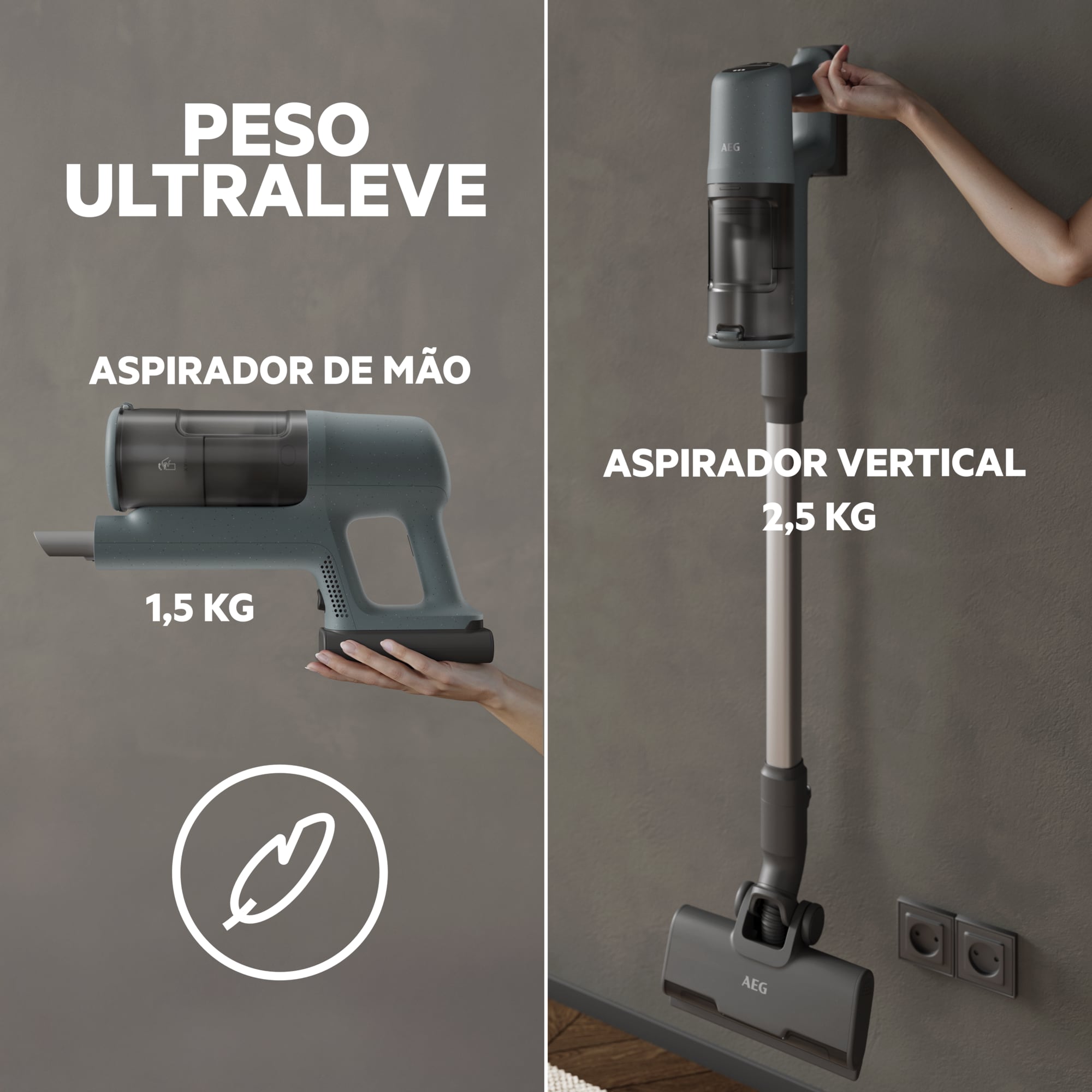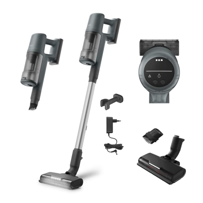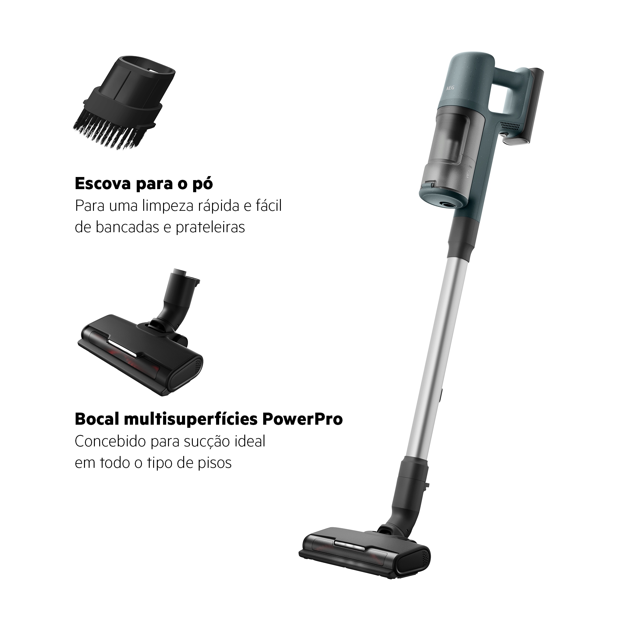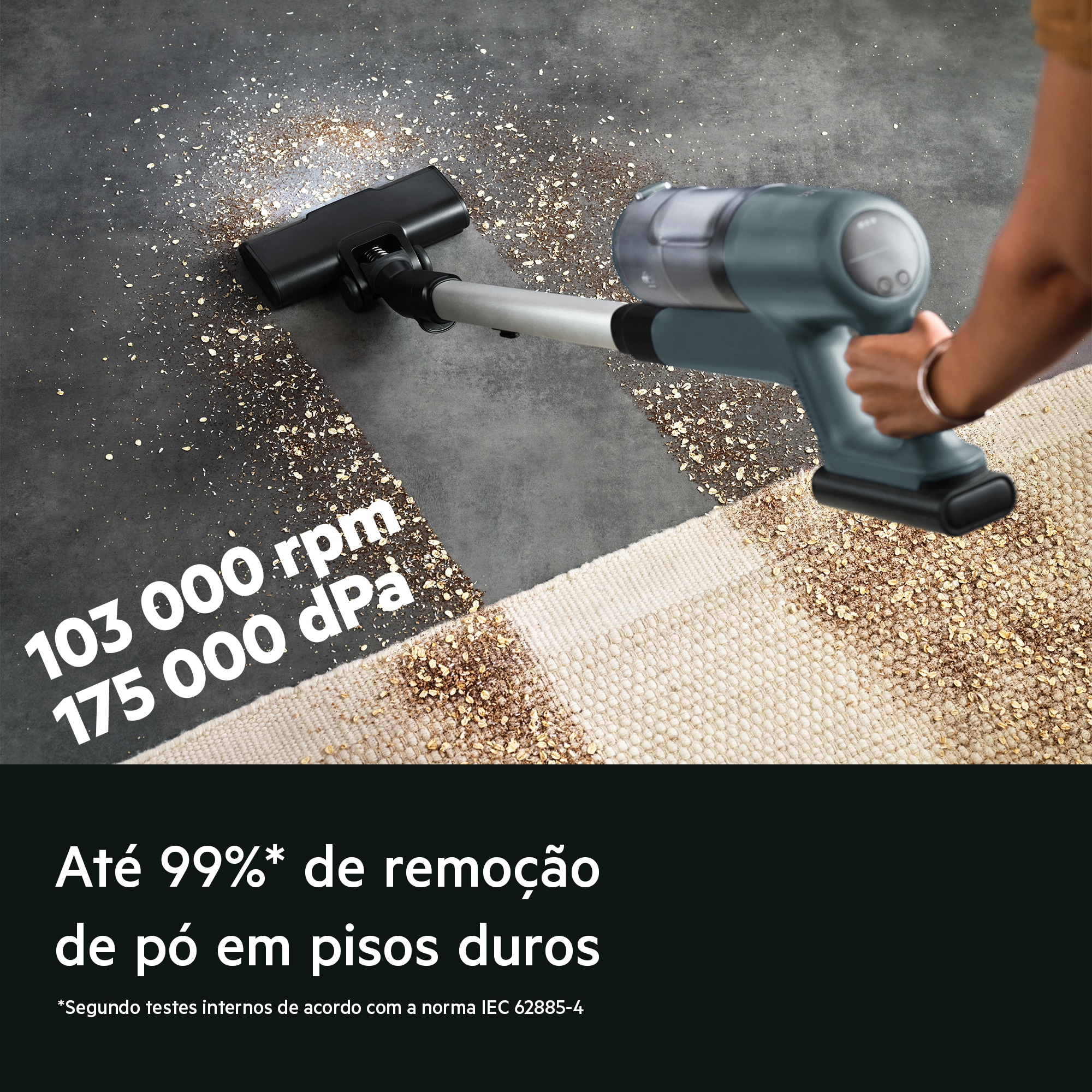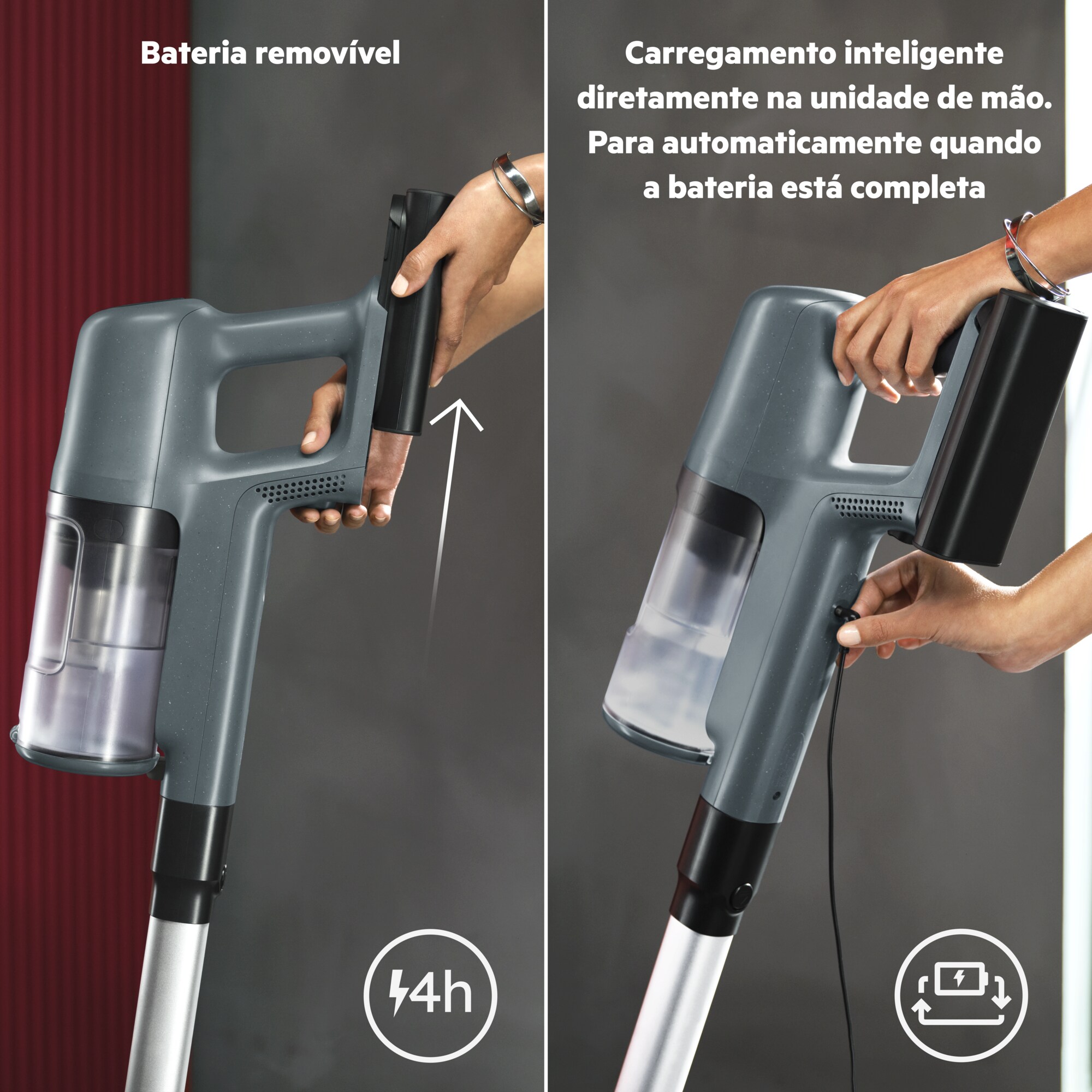 *Com base em testes internos de acordo com a norma IEC 62885-4 na medição do tempo de funcionamento do aspirador de mão no modo mínimo.