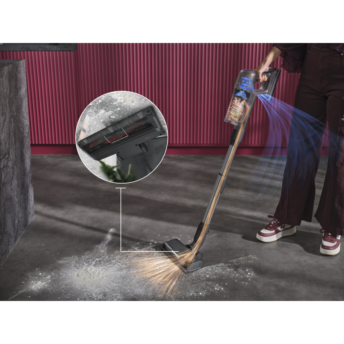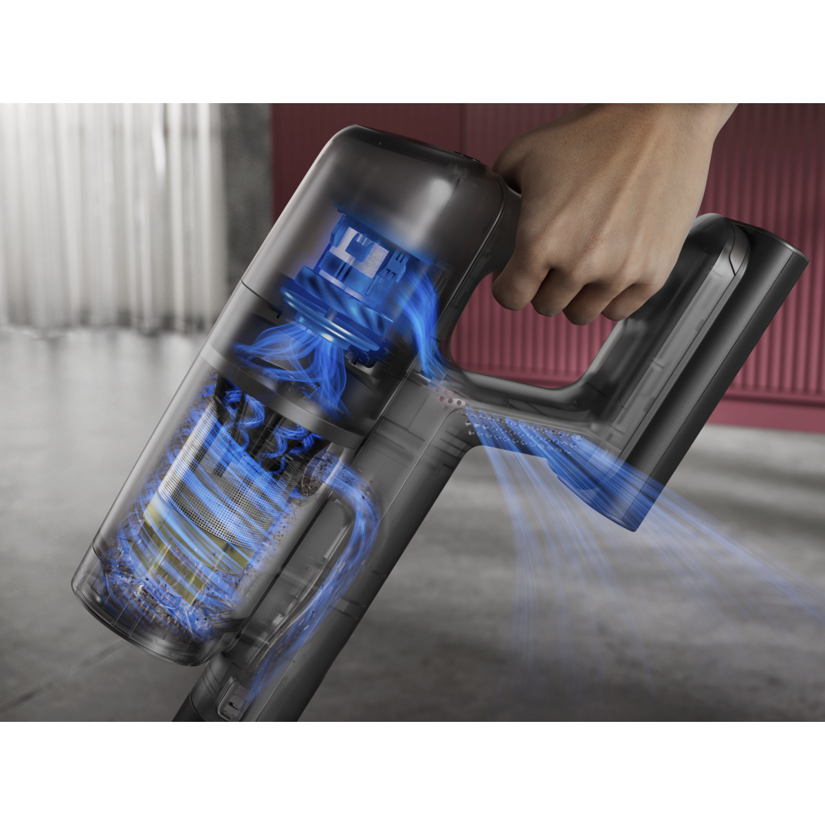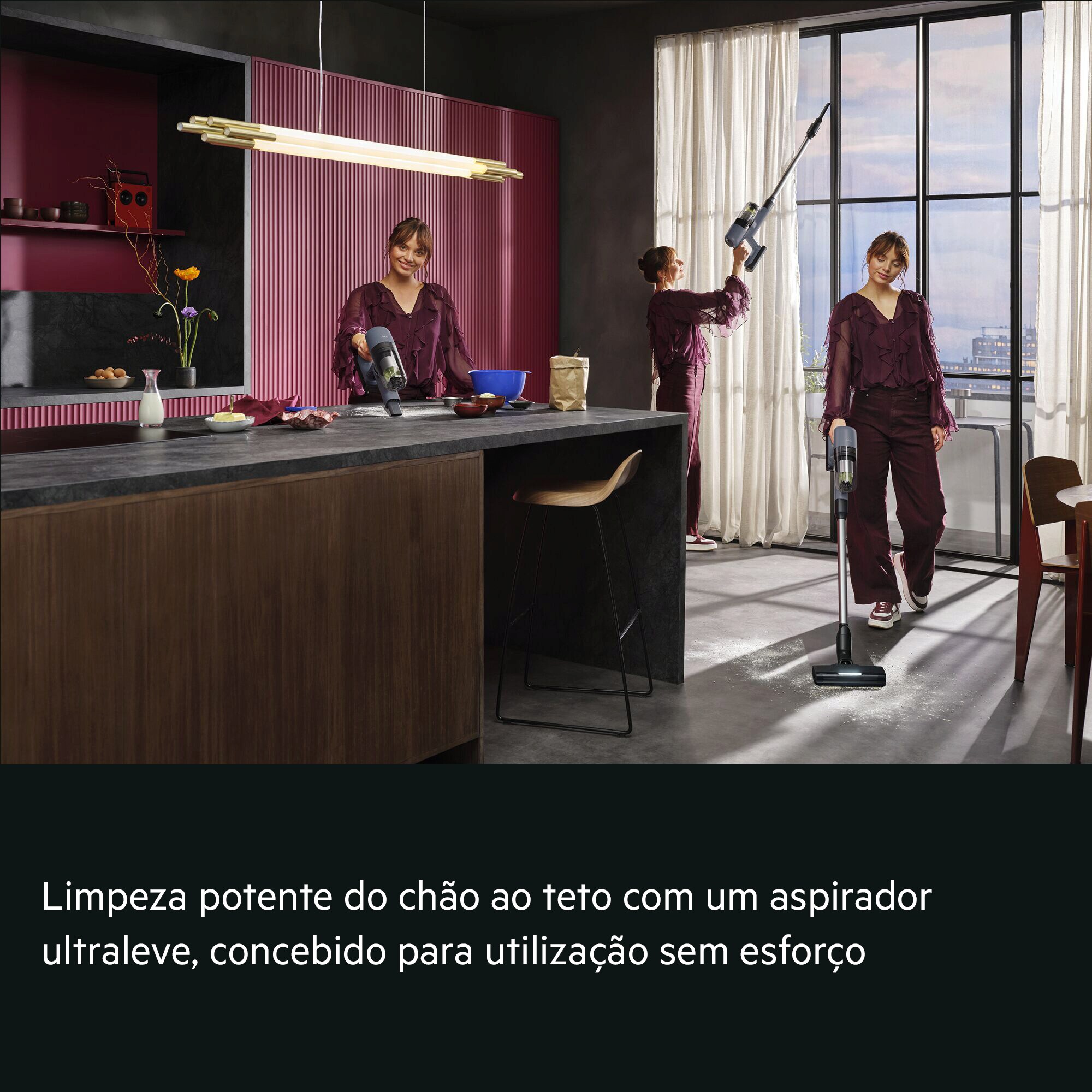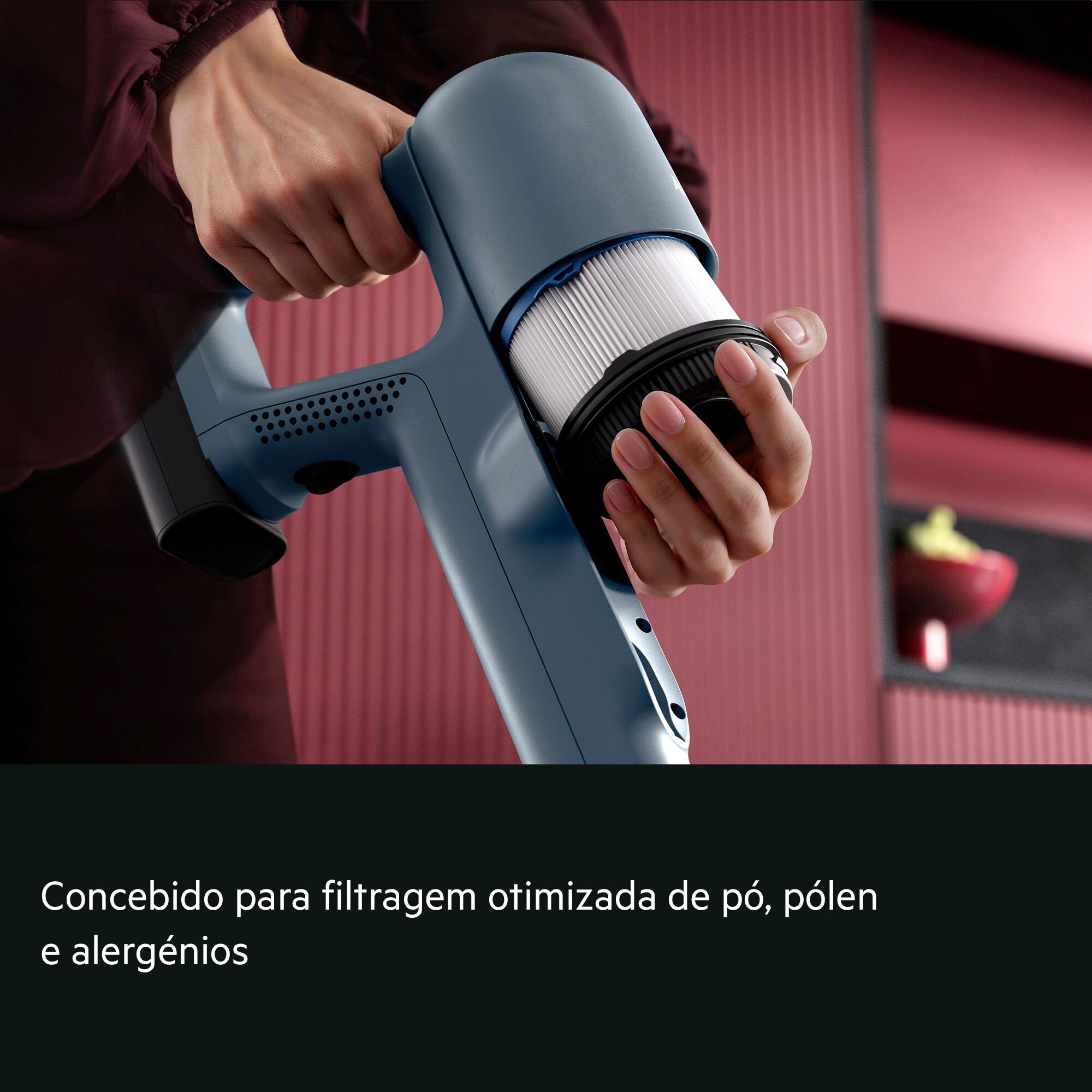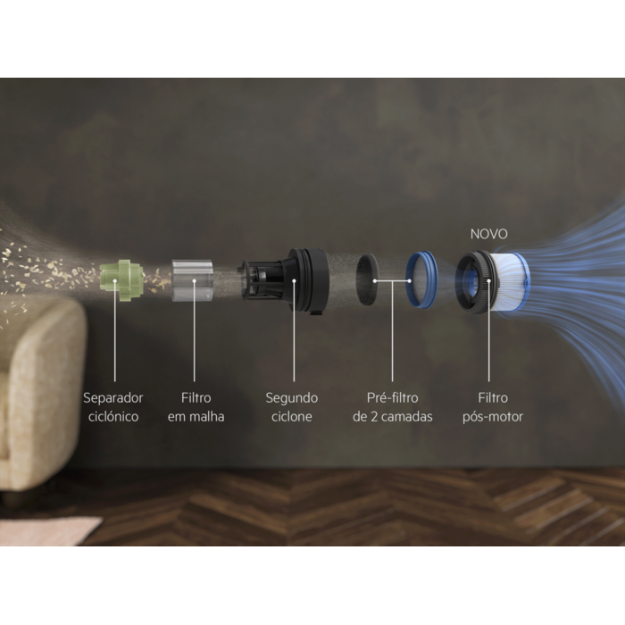 *Com base em teste interno segundo a norma IEC 62885-4.**Em comparação com motor de ciclone único em aspiradores sem fios.