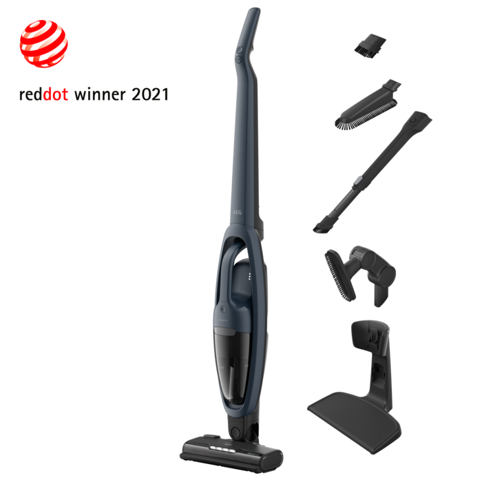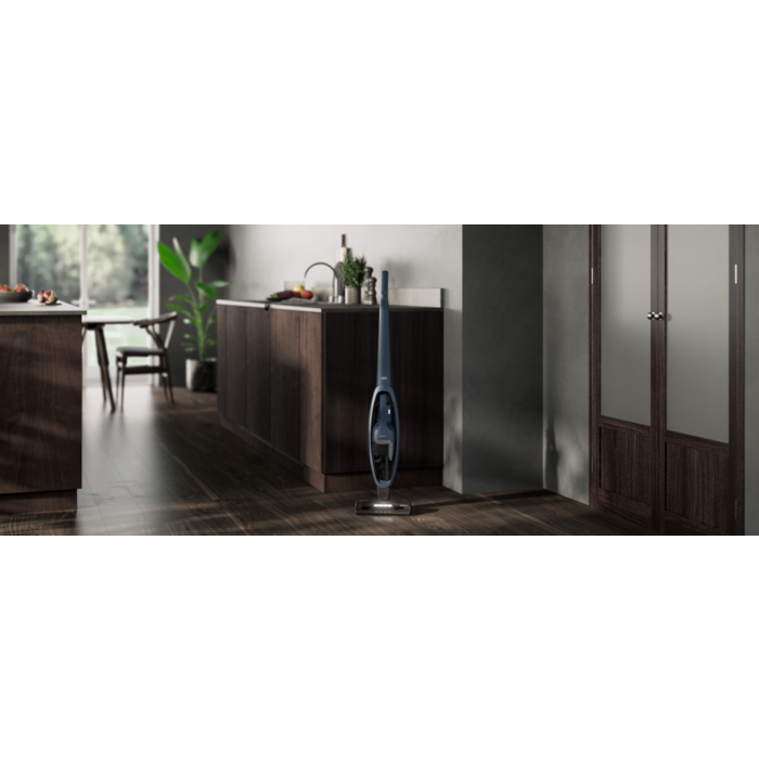 Aspirador vertical Série 5000 Animal de 18 v, bateria de lítio de alta densidade, 45 minutos de autonomia (2 velocidades), tecnologia BRUSHROLLCLEAN, depósito 0,3 litros, parqueamento vertical, com base de carga, escova para móveis delicados, ferramenta angular, escova para polvo, ferramenta angular e de acesso a espaço estreitos, cor azul denim